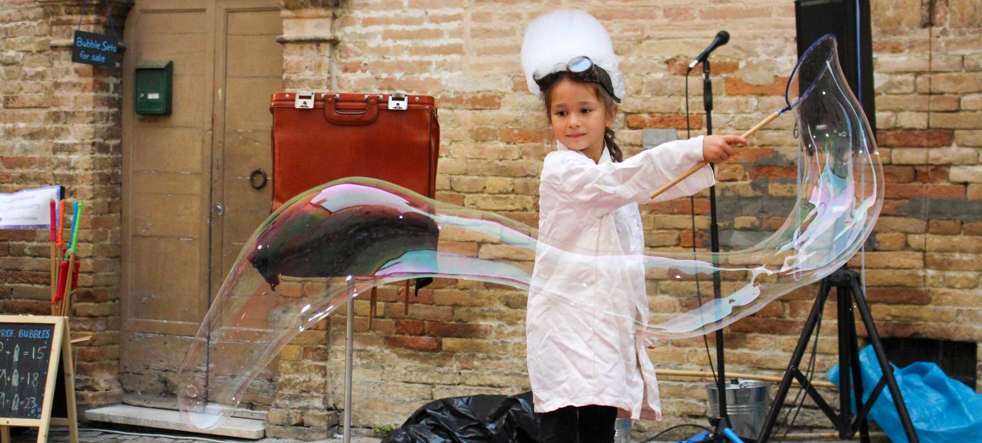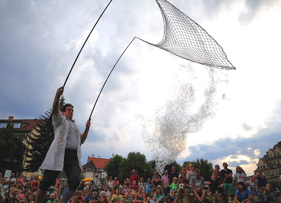 Nach einer unterhaltsamen Show können Sie bei einer Mitmach-Aktion selbst Hand anlegen und Seifenblasen